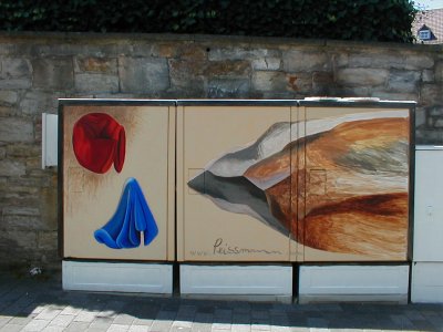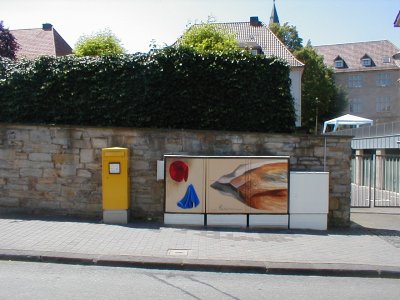 Die Stadt Paderborn wird bunter Gesponsort von der Firma EON und Paderborn Stadtmarketing werden die langweiligen grauen Elektrokaesten der Innenstadt in Kunstwerke verwandelt. Mein Kasten steht nahe beim Paderborner Dom, Ecke Giersstrasse/Heierstrasse. |
